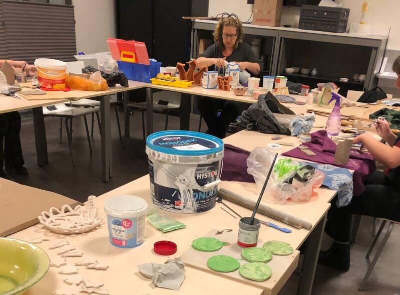 Kosten: 25,-- per les, dit is inclusief basismaterialen. (klei, gips)